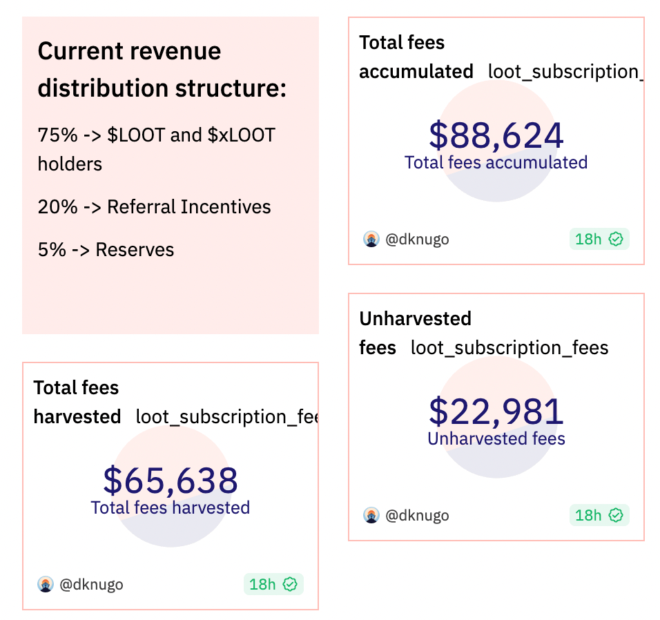 $xLOOT holders, apart from higher revenue sharing %, also receives special privileges such as higher portions of Airdropped tokens from Freemium commissions & private lounge chat.
