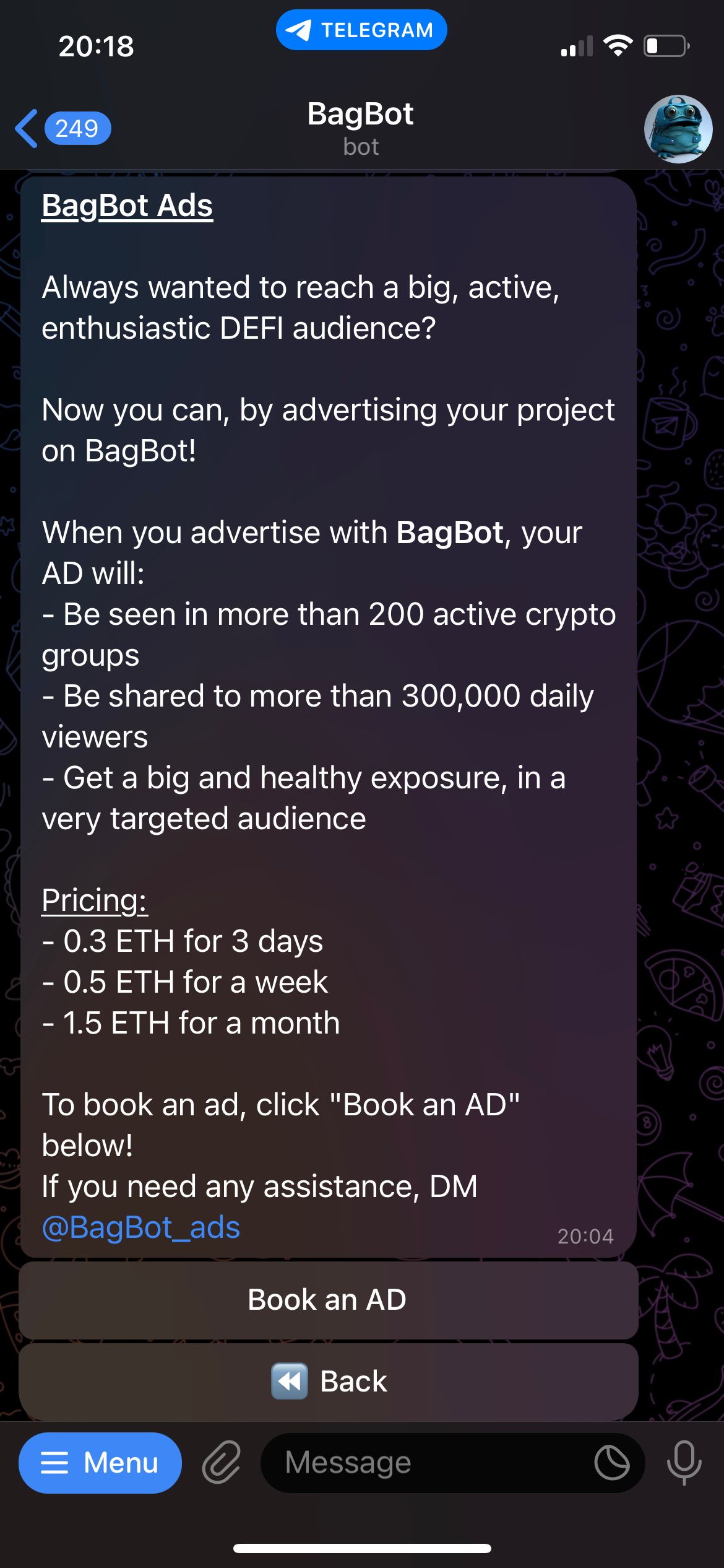 Furthermore, if you wish to advertise to communities that are using teh bot, its all possible via Tg